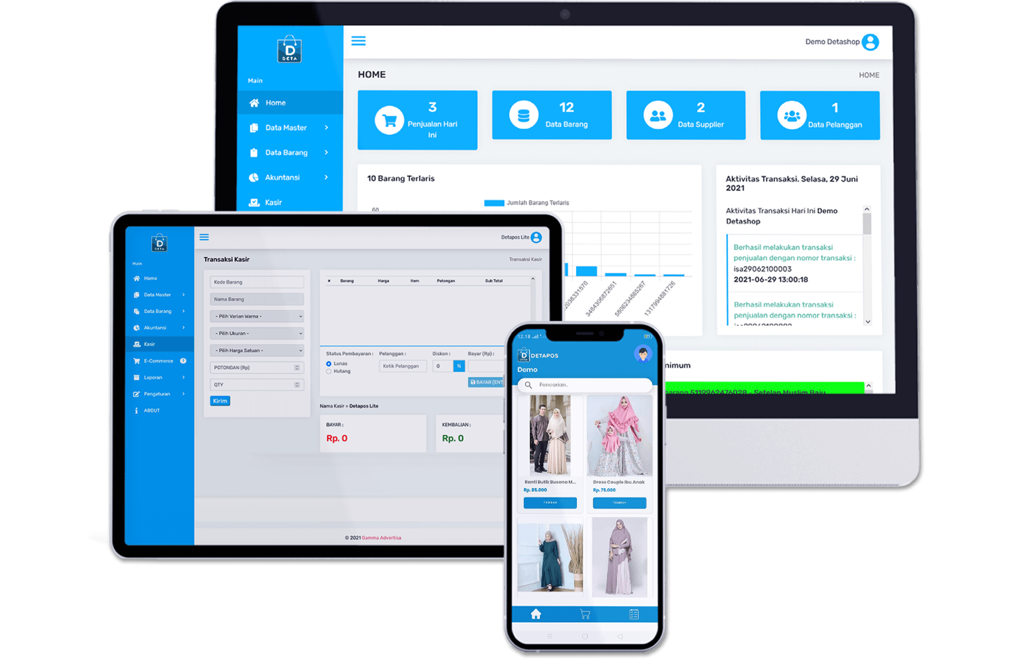 Sistem yang ada pada detapos memudahkan Anda & pelanggan Anda untuk melakukan transaksi & juga pembayaran, sehingga konversi jualan makin tinggi.