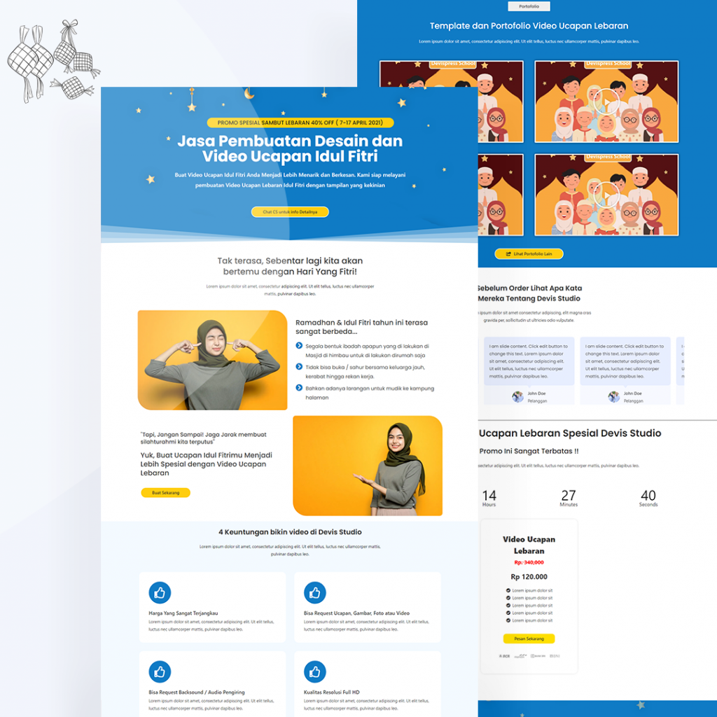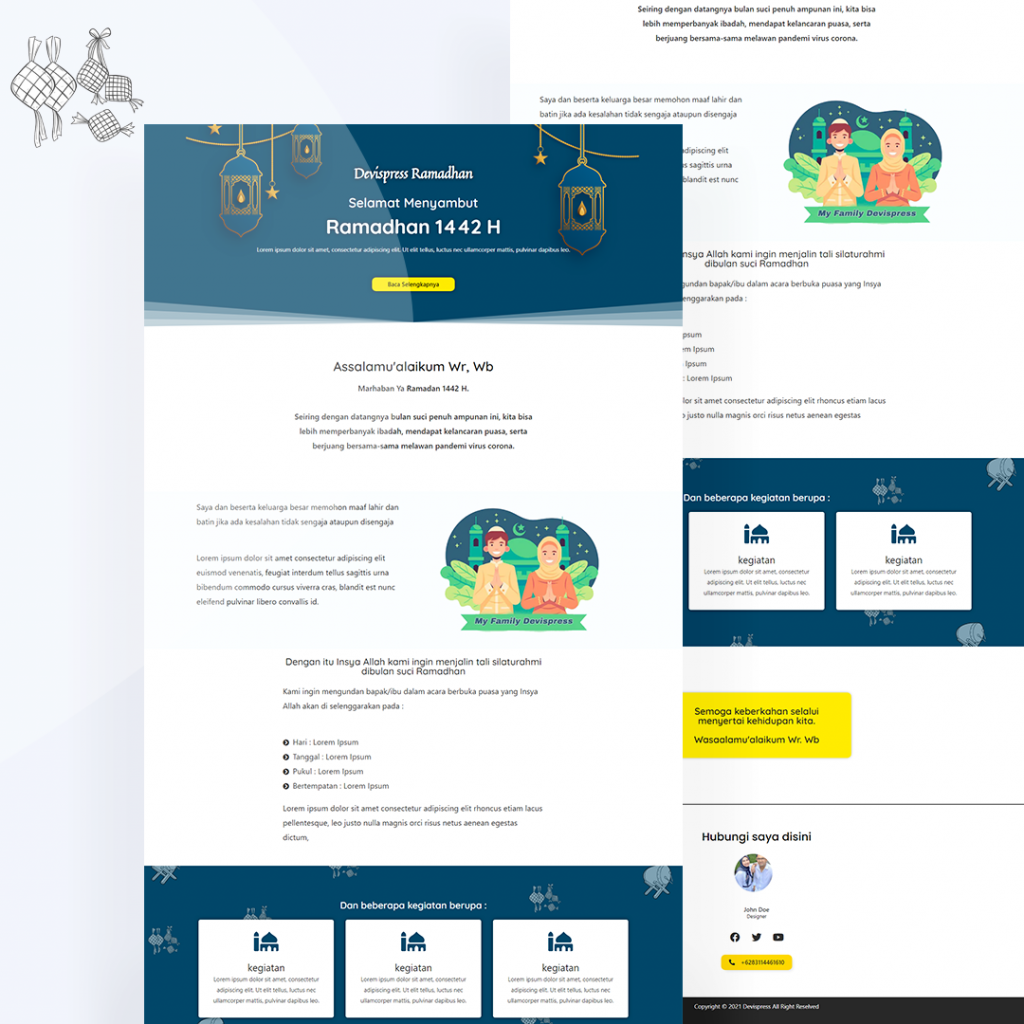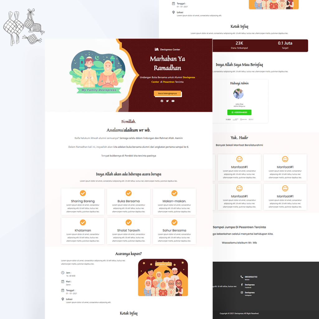 Devispress siap membantu anda dalam membuat landing page dengan bernuansa Ramadhan/Islamic dengan konversi tinggi menggunakan 100% Elementor Free