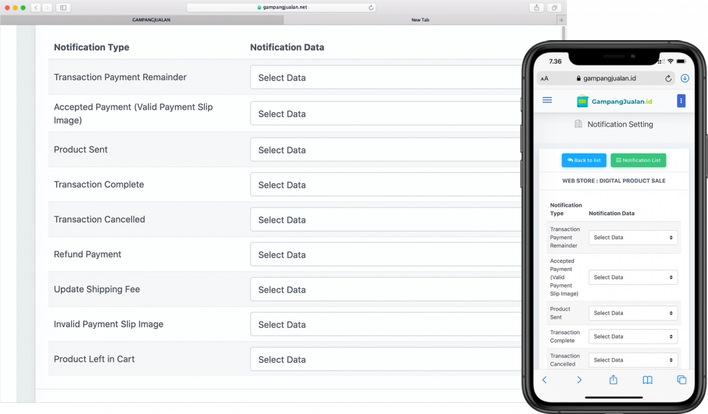 Anda bisa mengirimkan notifikasi kepada pembeli anda dengan berbagai macam notifikasi, mulai orderan masuk, produk dikirimkan, sampai produk sampai tujuan