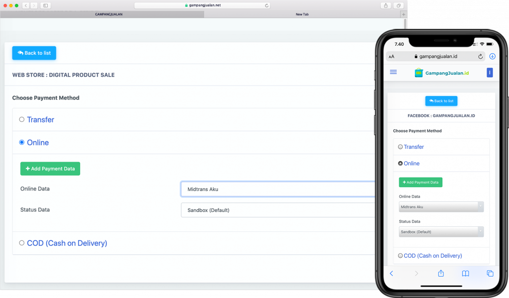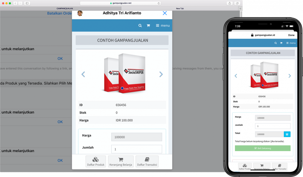 Gampangjualan juga menyediakan halaman checkout order yang langsung terintegrasi dengan toko online anda