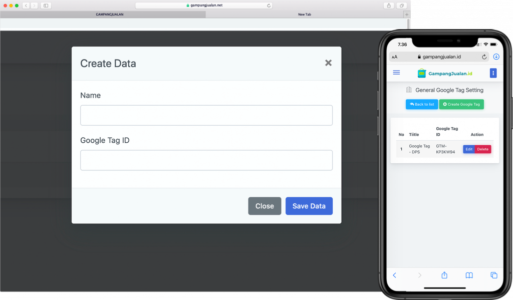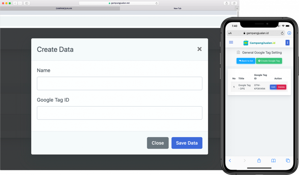 Selain facebook, Gampangjualan juga bisa di integrasikan dengan google tag manager ID yang anda miliki