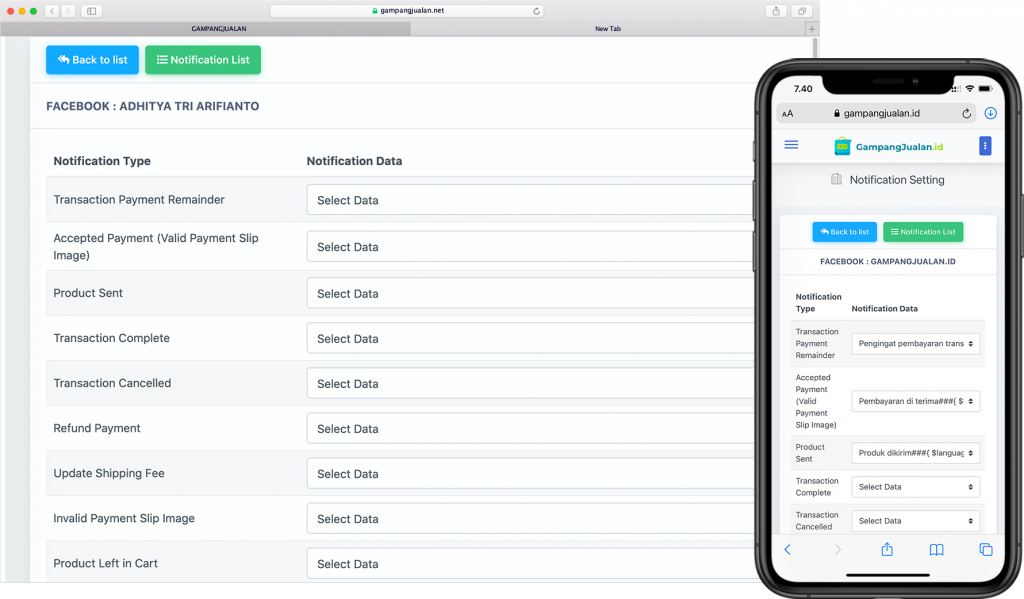 Dengan fitur ini, GAMPANGJUALAN akan membantu anda memiliki toko online di dalam facebook messenger secara langsung