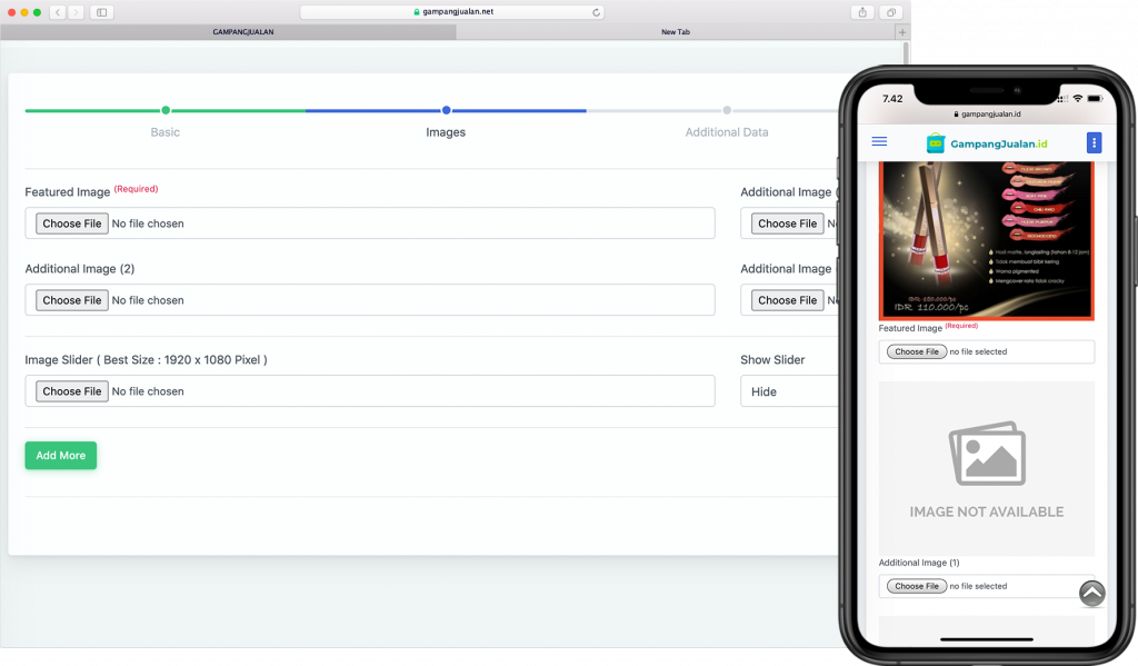 Anda bisa memasukkan lebih dari 1 gambar yang anda miliki untuk setiap produk yang anda miliki
