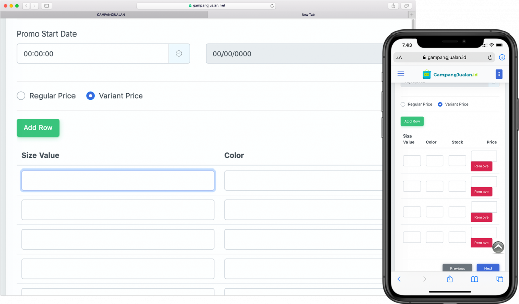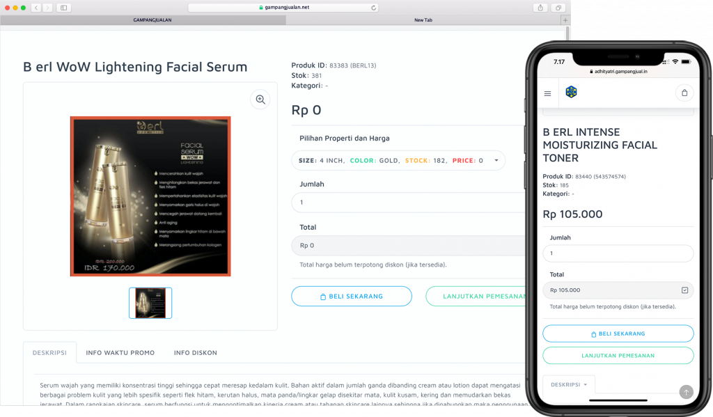 Anda bisa membuat variant produk tertentu, misal dari segi harga, ukuran, dan juga warna dari produk yang anda miliki di gampangjualan