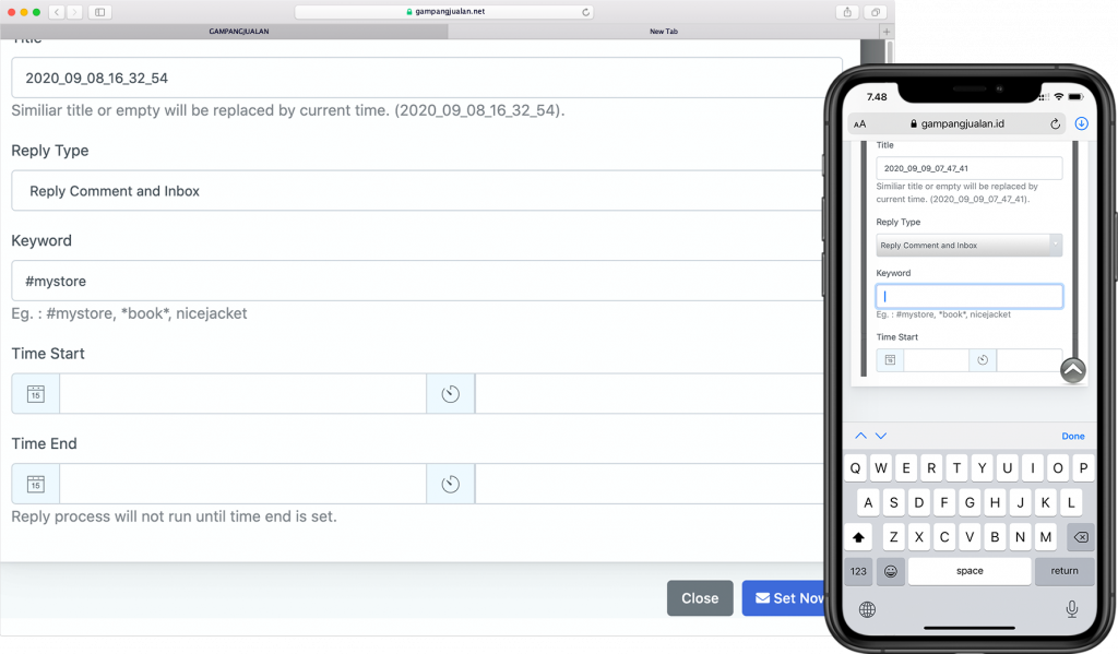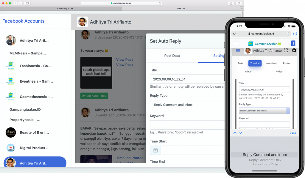 Anda memiliki opsi 2 macam autoreply di comment, atau comment dan inbox atau inbox saja