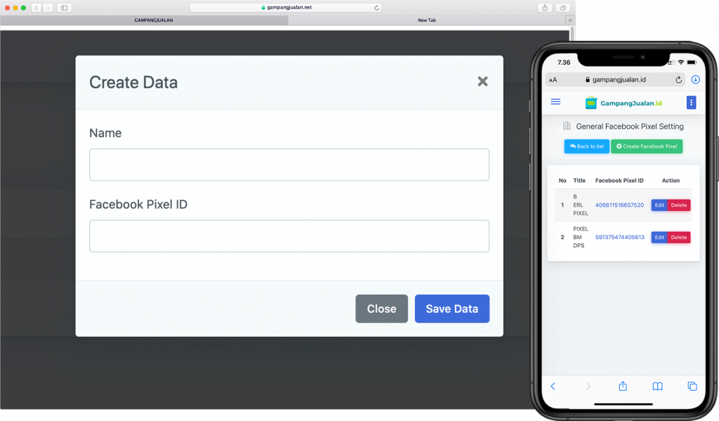 Di dalam toko online yang anda buat dengan gampangjulan, anda bisa memasukkan facebook pixel, lebih dari satu facebook pixel