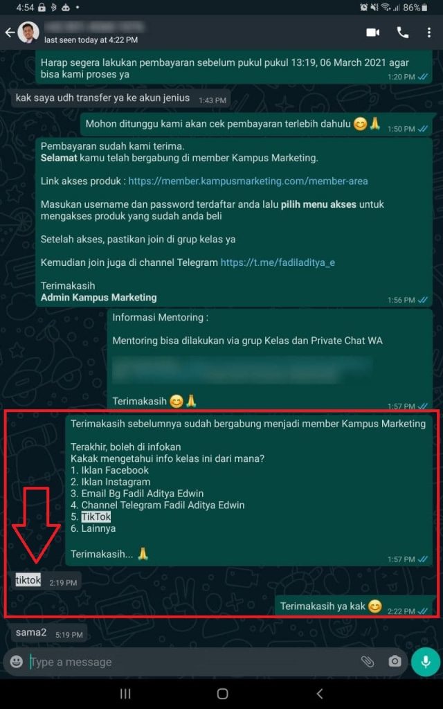 KAMPUS TIKTOk Satu-satunya kelas yang berfokus pada marketing (konversi) dengan private chat bimbingan