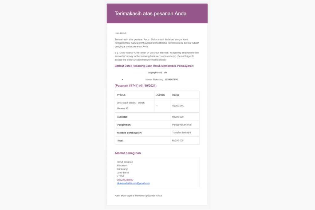 Customer Otomatis mendapatkan Email Ketika mereka Membeli produk dari Toko Online anda..