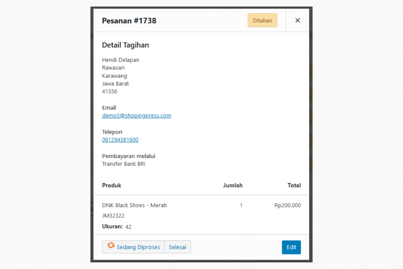 Dengan Fitur ini memudahkan Admin ( Pemilik Toko Online ) untuk mengedit, Merubah status orderan, Hingga Follow Up..