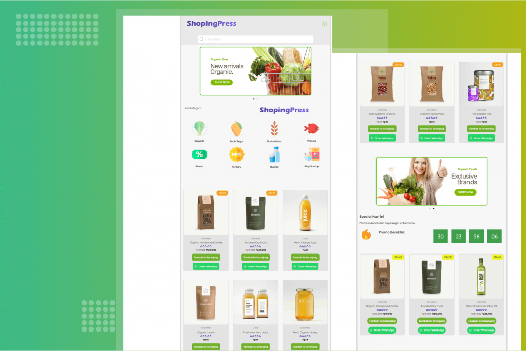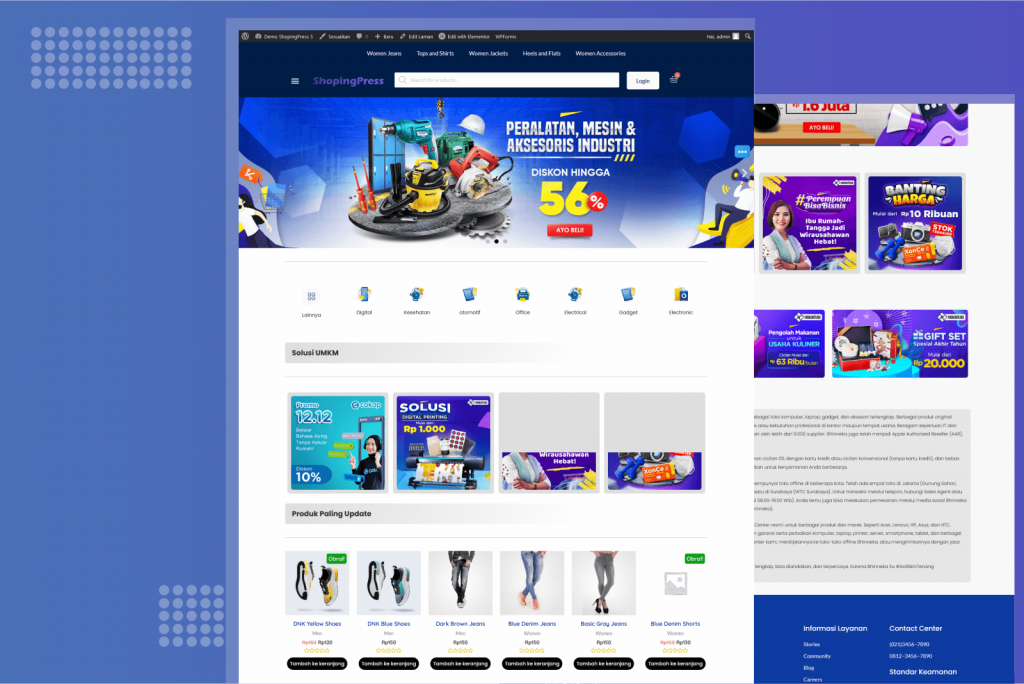 ShopingPress Toko Online “WooCommerce” Lengkap dengan Vidio Panduan 5 + Template JSON, WordPress Berbasis Elementor, Siap anda gunakan..