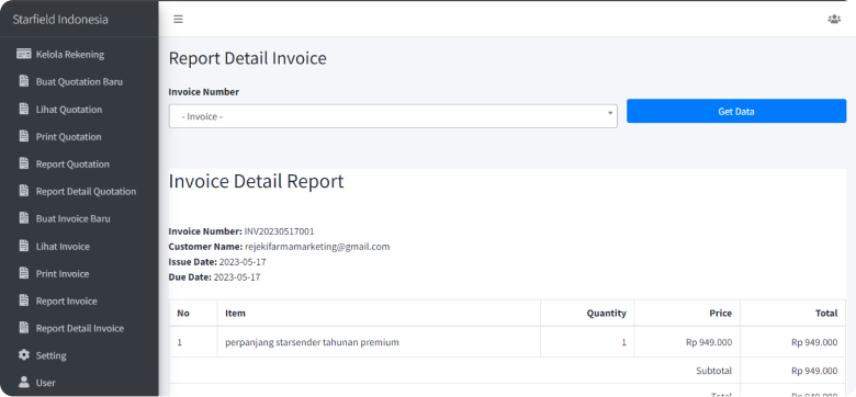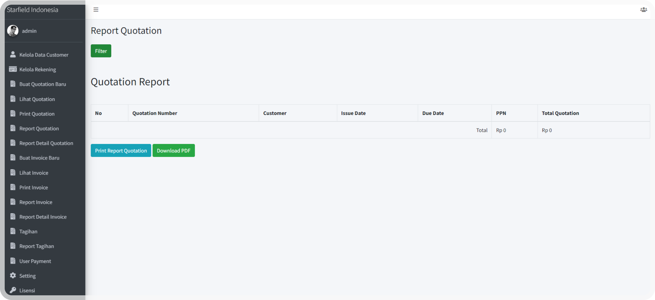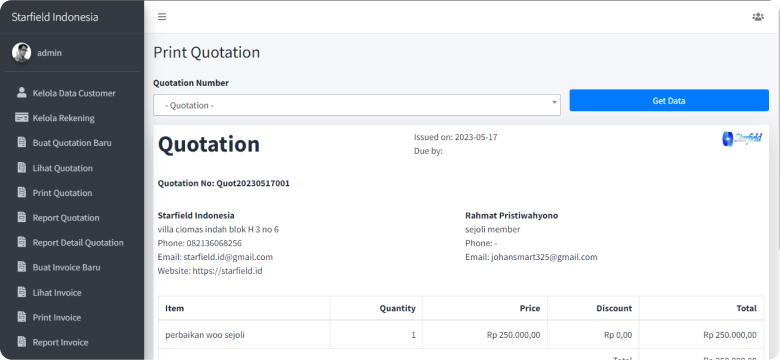 Temukan detail laporan quotataion yang telah Anda buat pada fitur ini