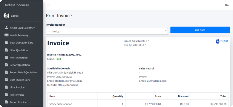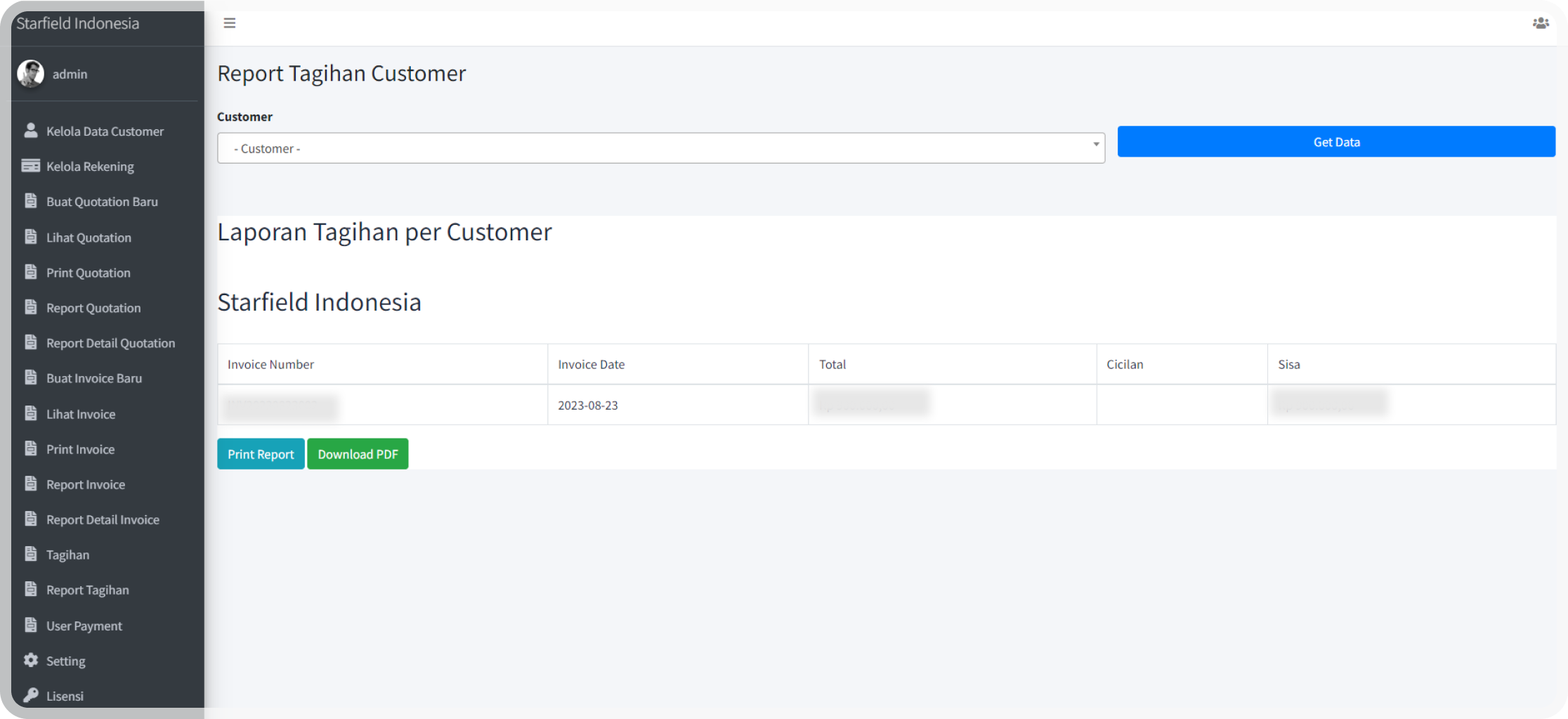 Laporan invoice dalam bentuk file print jika Anda membutuhkan laporan yang perlu untuk dicetak
