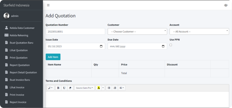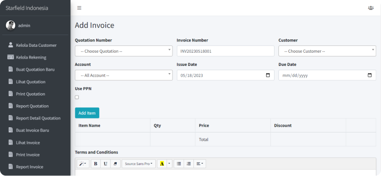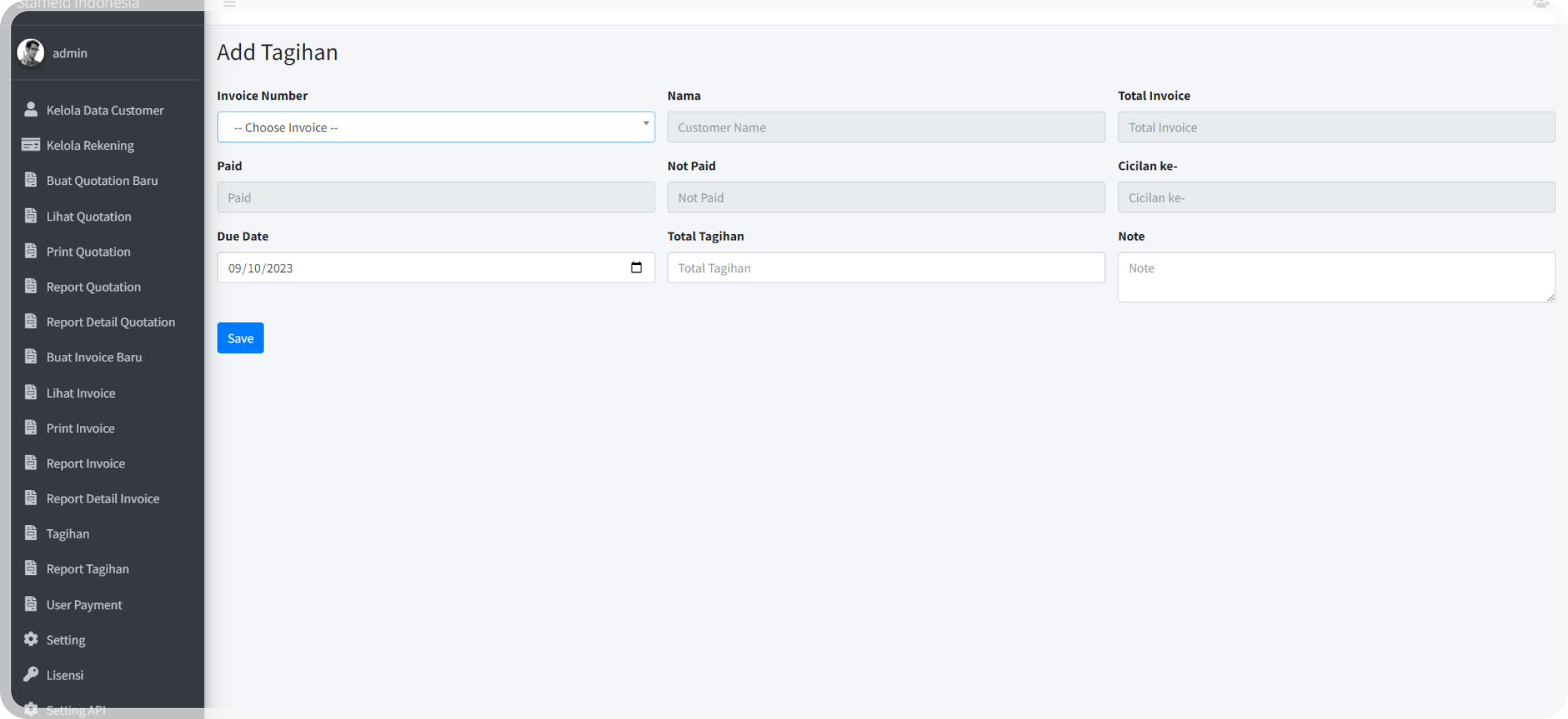 Menambahkan invoice baru lebih mudah dengan field-field yang lengkap dan praktis digunakan