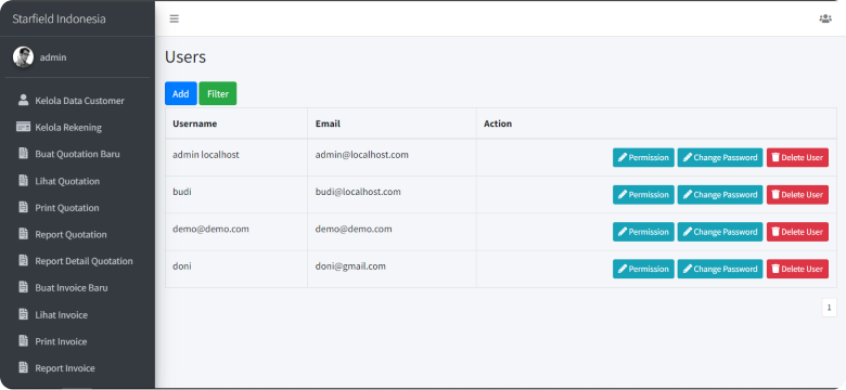 Fitur ini dapat menambahkan beberapa user yang dapat mengelola sistem aplikasi Anda, tambahkan user dengan lebih mudah