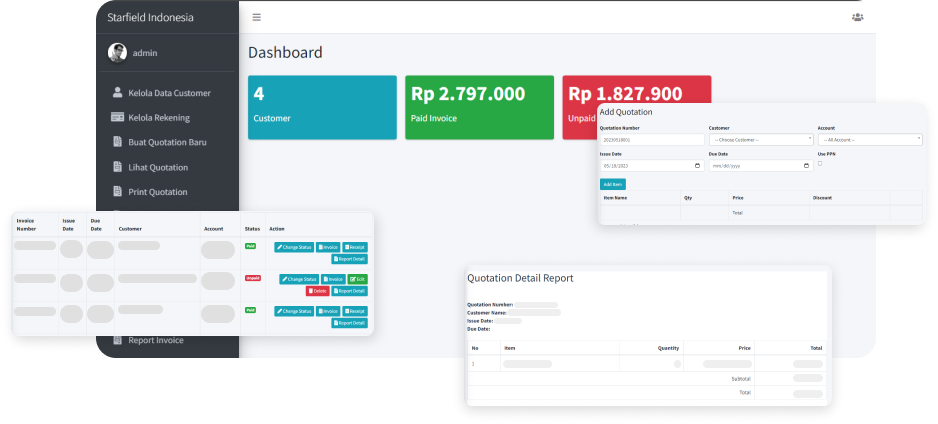 Temukan detail laporan quotataion yang telah Anda buat pada fitur ini