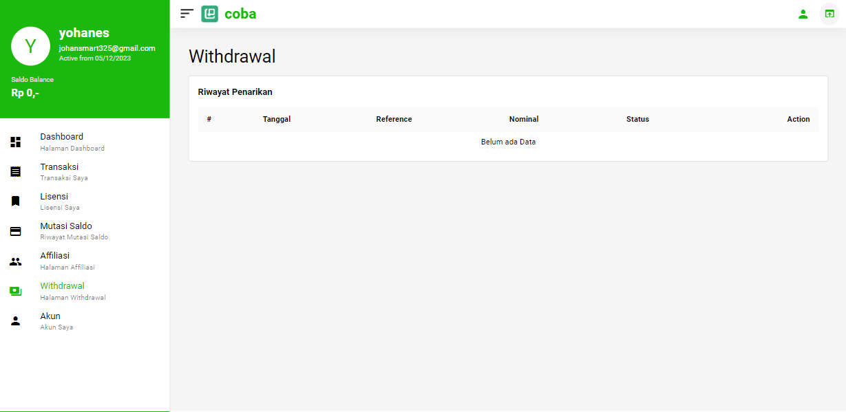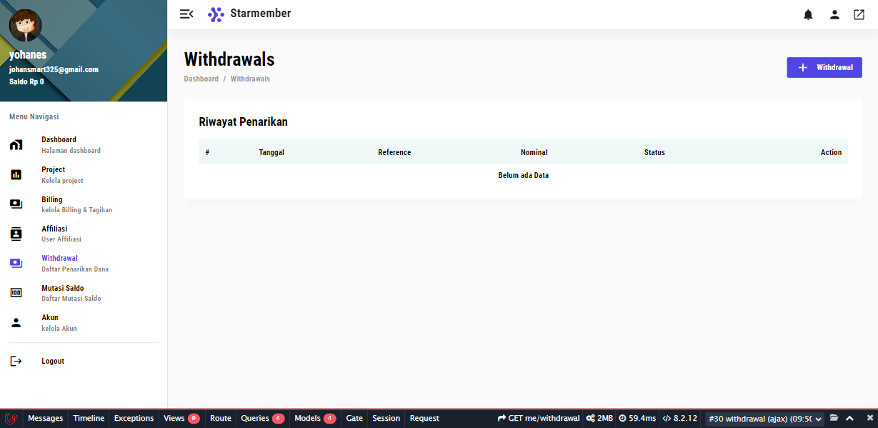 Di bagian Withdrawal, Anda dapat dengan mudah melakukan penarikan dana dari saldo yang Anda kumpulkan melalui Starmember.