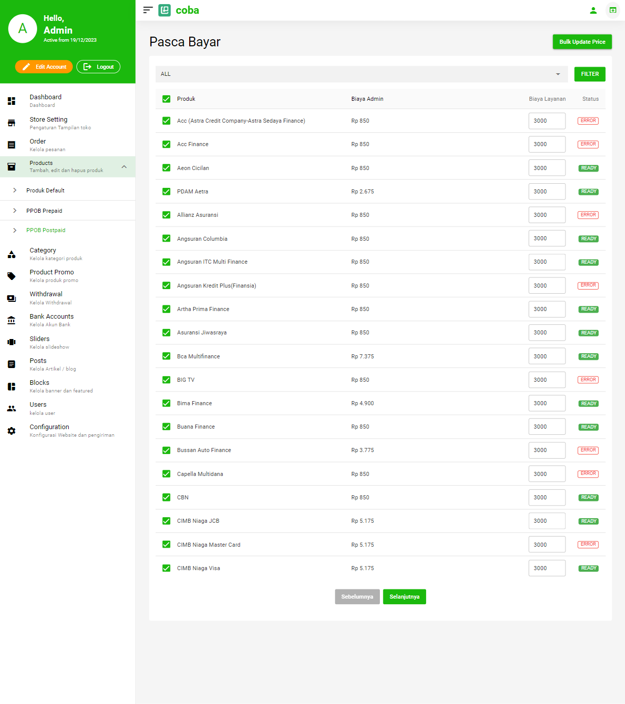Produk-produk yang terkait dengan layanan pembayaran pascabayar, seperti tagihan listrik, tagihan internet, atau pembayaran pascabayar lainnya.