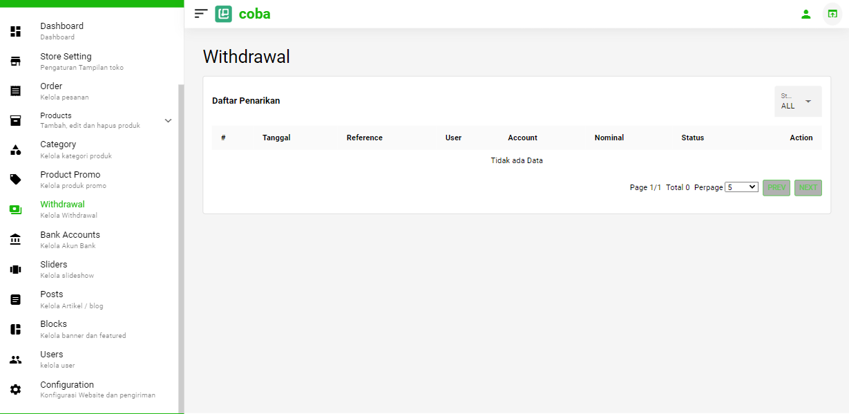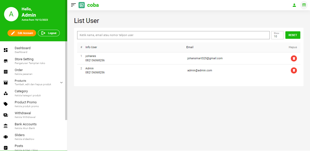 Pengaturan terkait pengguna atau staf yang memiliki akses ke dashboard atau fungsi-fungsi tertentu dalam toko online.
