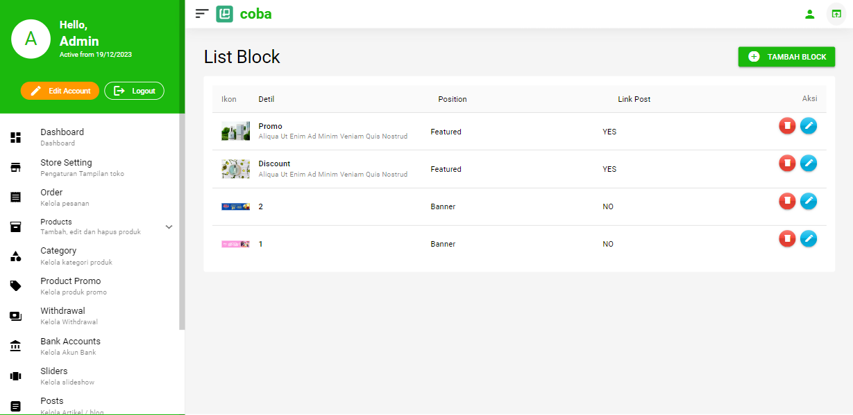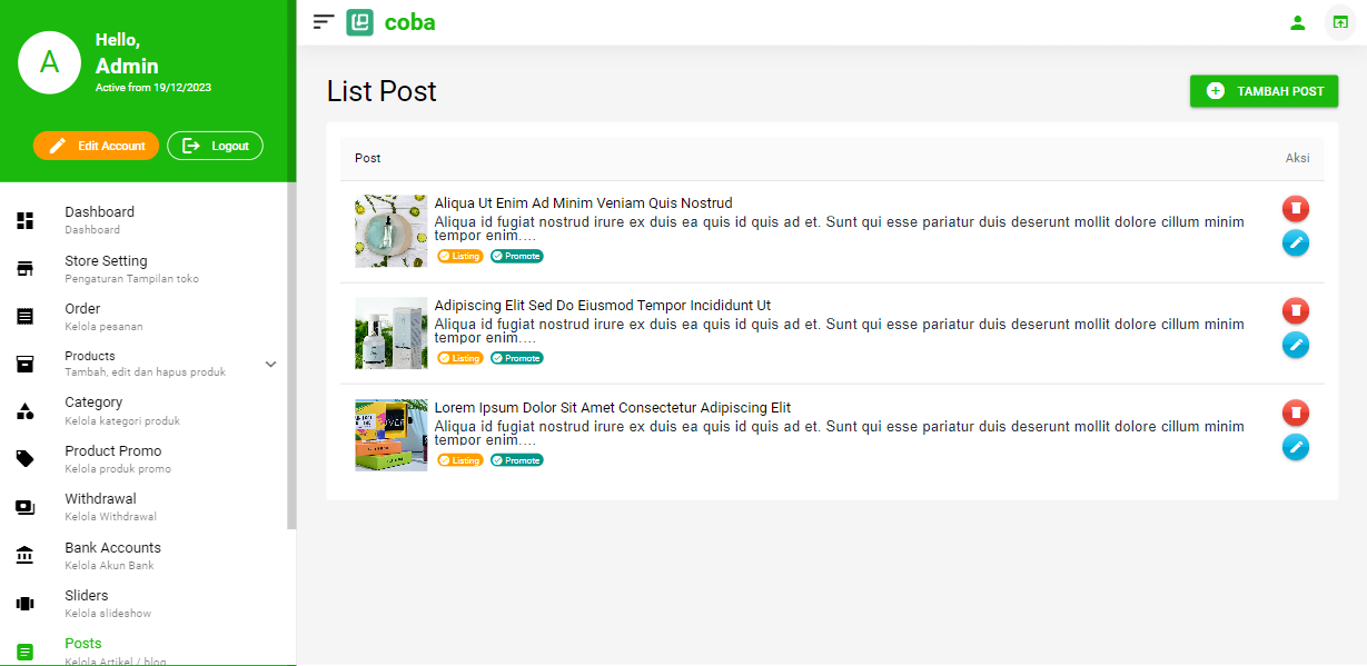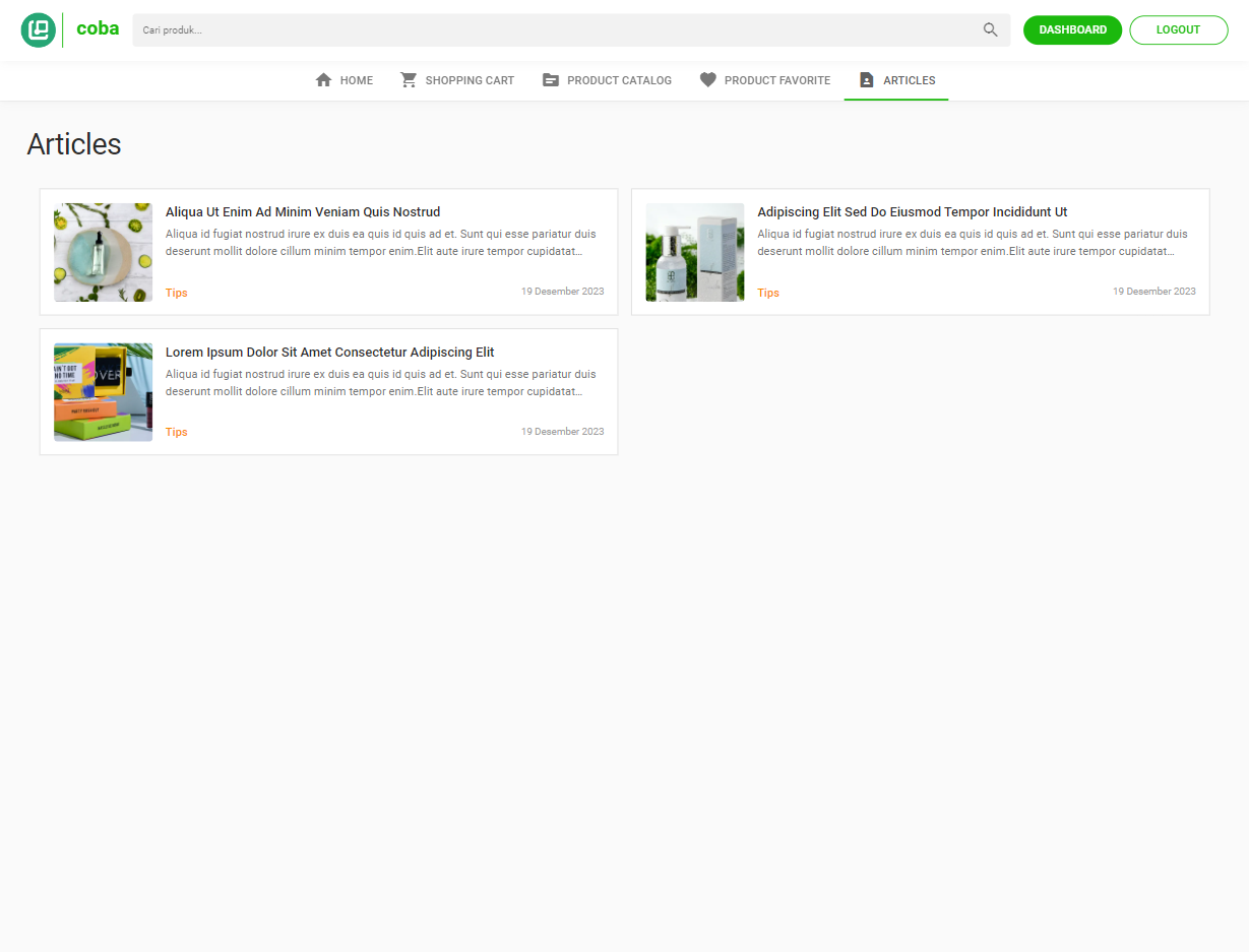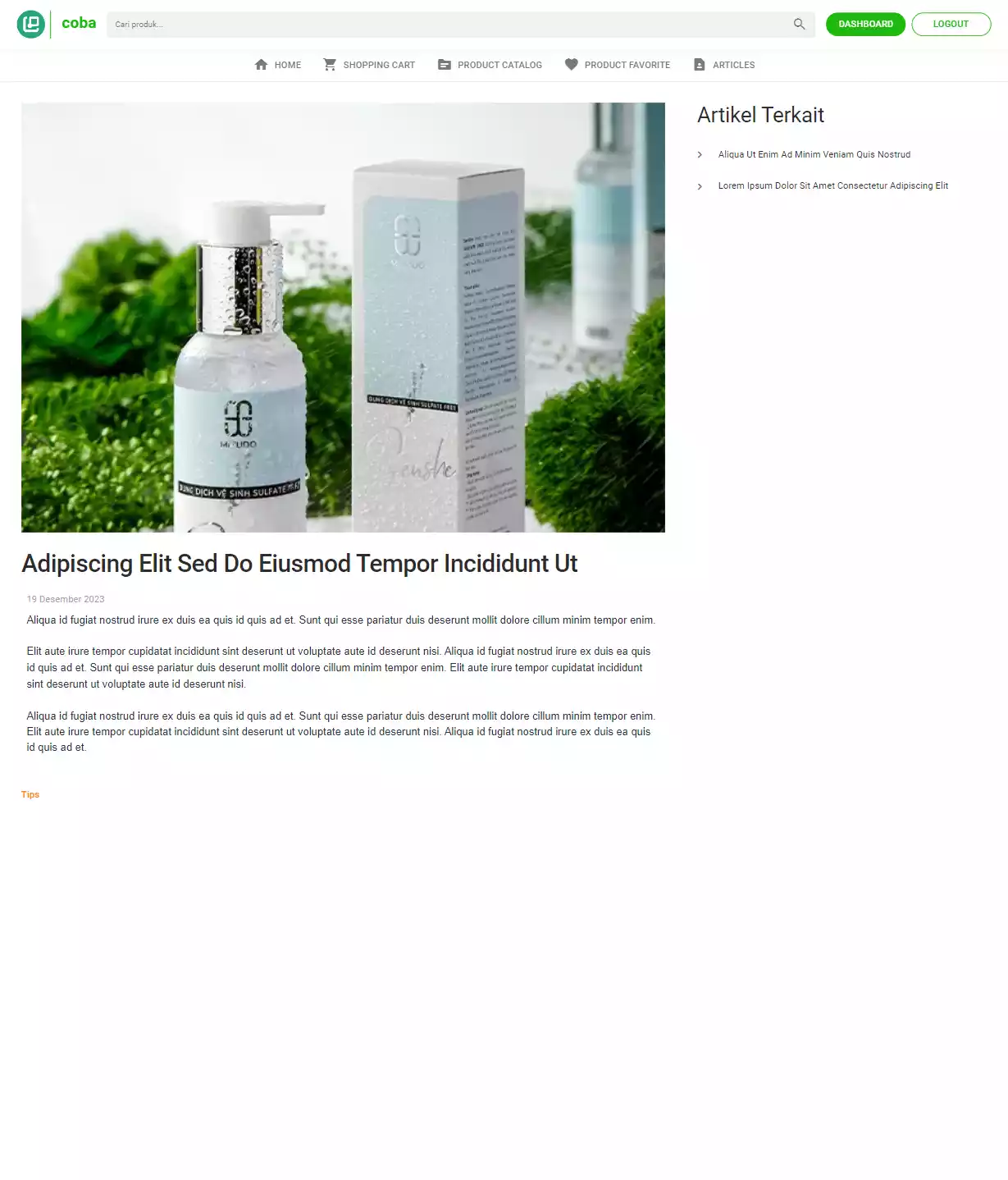 Bagian untuk menambah dan mengelola konten artikel atau blog yang relevan dengan produk atau layanan yang ditawarkan.