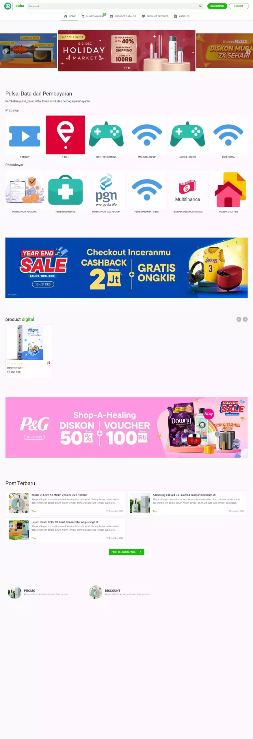 Halaman pertama yang dilihat pengunjung saat mengakses toko online. Memberikan ringkasan menyeluruh tentang produk, penawaran, dan informasi penting lainnya.
