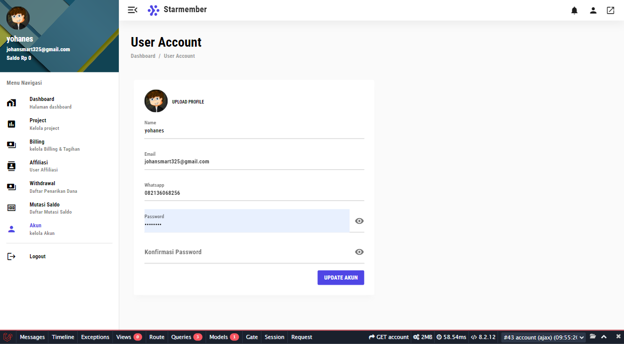 Ini adalah pusat kendali untuk mengelola semua aspek operasional di Starmember Anda.