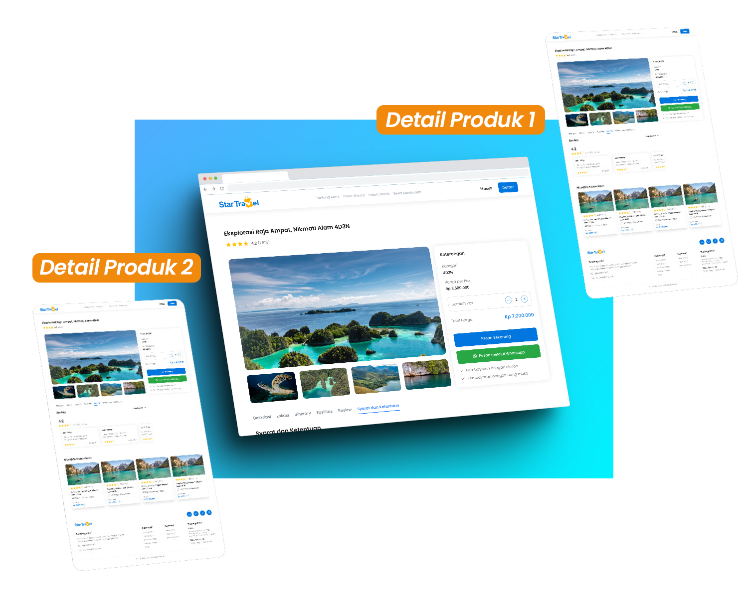 Dengan design yang responsive membuat website travel Anda bisa tampil di semua perangkat mobile maupun desktop