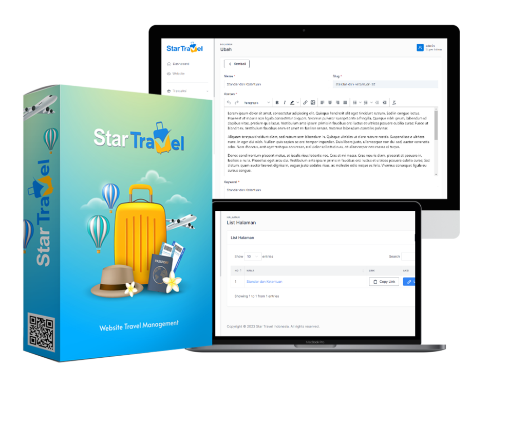 Nikmati mudahnya membuat tampilan website travel jadi profesional, proses transaksi lebih mudah dan penjualan lebih optimal